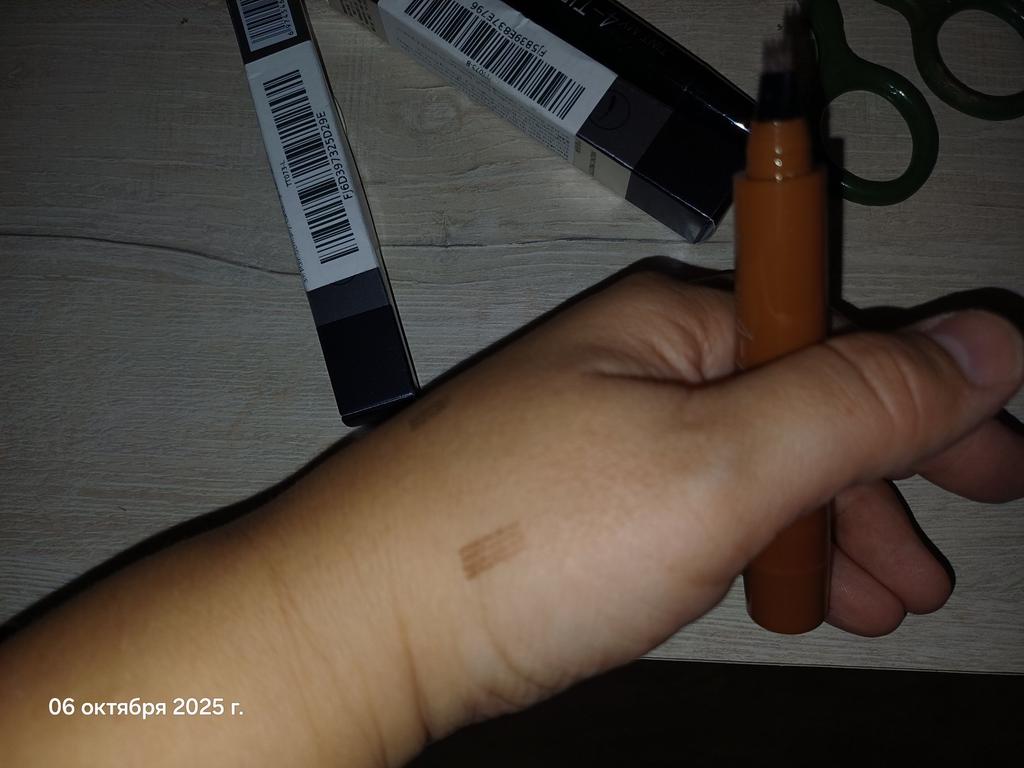 Der Augenbrauenstift ist wirklich gut. Er kam ohne Mängel an, zeichnet die Augenbrauen sehr schön und die Farbe verblasst nicht. Ich kann ihn nur empfehlen, Sie werden es nicht bereuen. Vielen Dank an den Verkäufer!