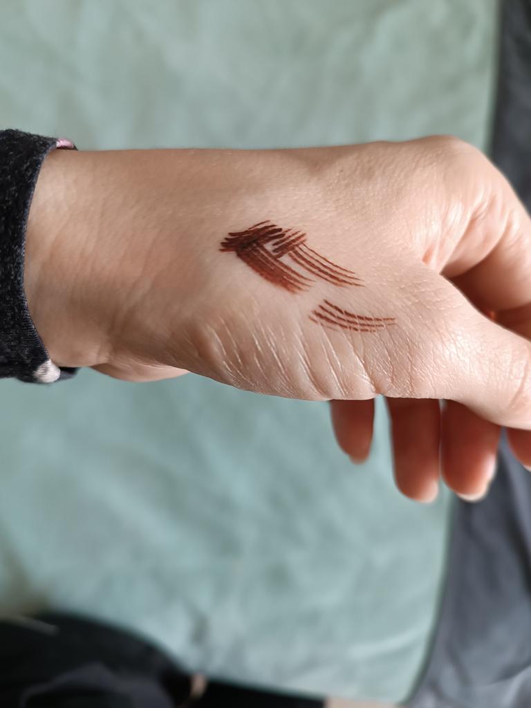 Alles wie in der Beschreibung. Die Farbe ist dunkelbraun, angenehm. Nicht wasserfest, aber schwer zu entfernen. Beim ersten Kontakt mit Wasser fließt sie nicht einfach ab.