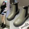 Plateau-Chelsea-Stiefel für Damen, Designer-Schuhe 2024, neue Mode, britischer Stil, runde Zehenpartie, Lederstiefeletten, Damen-Slipper
