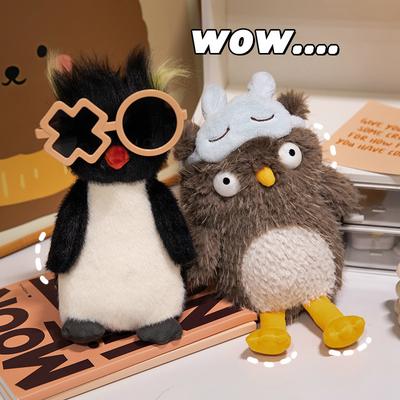 Eulenpuppe mit Augenbrauen, Plüschtier, gebratener Pinguin, süßes Weihnachtsgeschenk