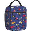 Cartoon Excavator Truck Pattern Lunch Box Boys Kids Men Insulated Bento Bag Reusable Portable Thermal Organizer for Picnic Beach