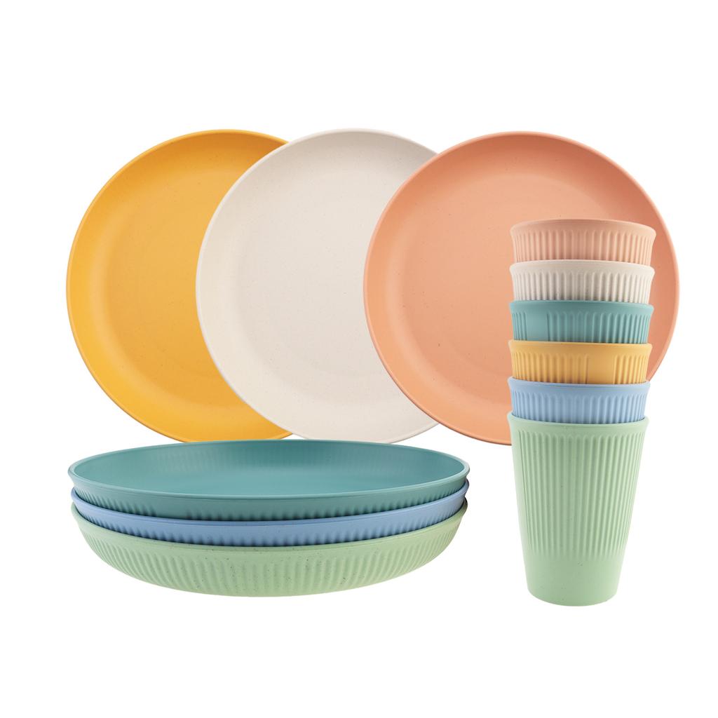 18-teiliges Tragbares Reise-Plastik-Teller- und Schüssel-Besteckset Vertikales Wiederverwendbares Geschirrset Essgeschirrsets für Picknick, Camping, Reisen, Schule