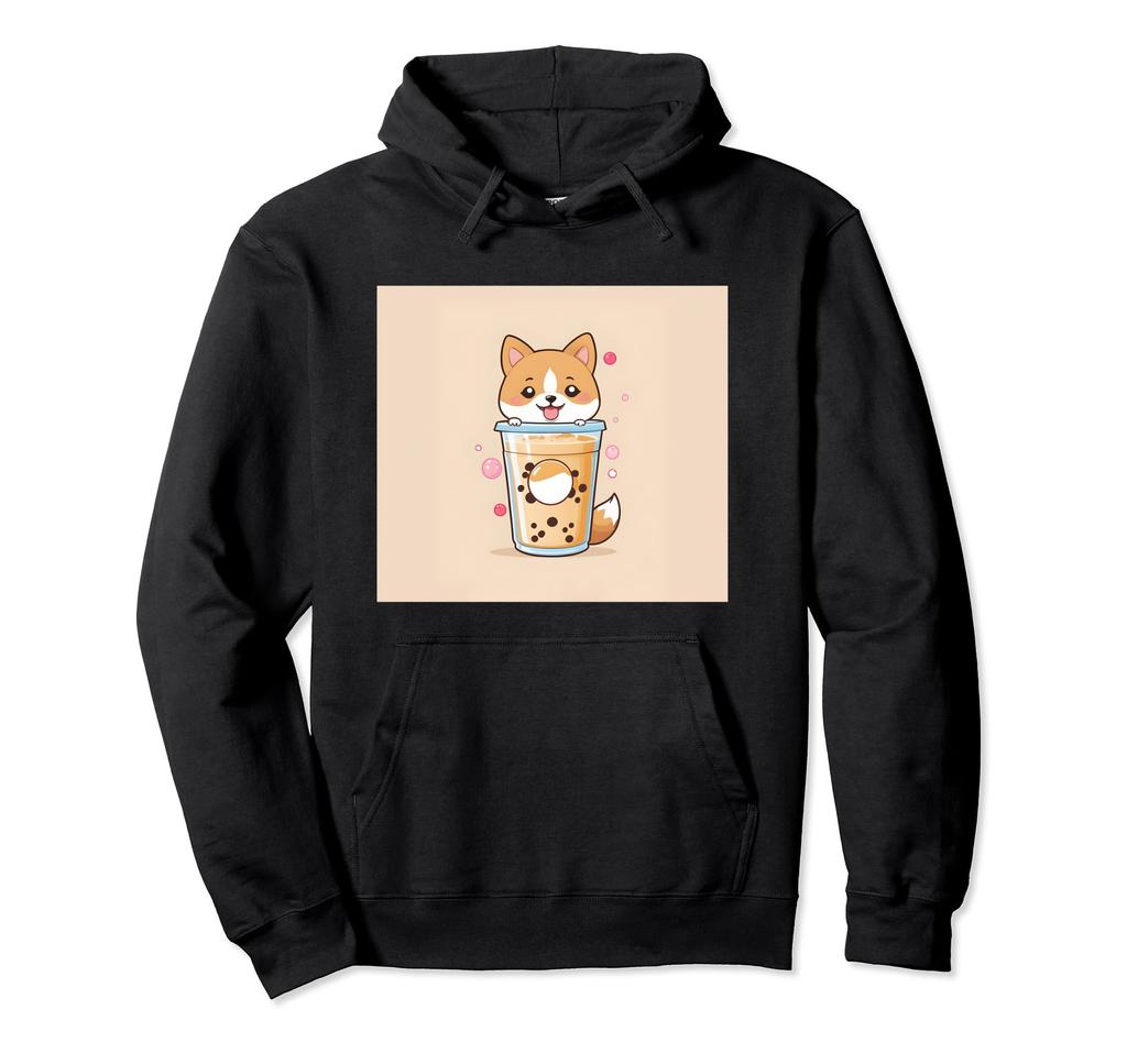 Shiba bubble things print hoodie süß, hund, inu, boba, tee, süß,