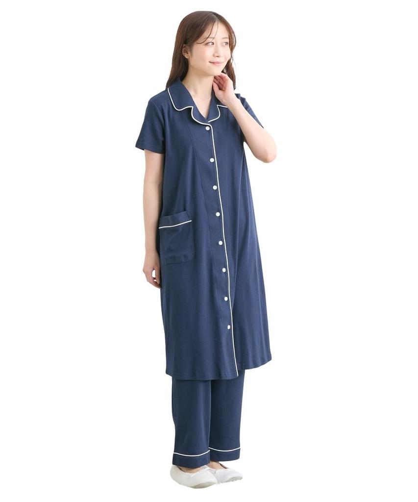 The collar gives it a neat look, while the cut-and-sew material makes it soft and comfortable to wear.The long length allows you to wear it without pants. The front button opens, making it convenient for examinations when hospitalized. The second and third from the top are snap buttons, so you can easily open it with one hand while holding your baby. The top button is a regular button, so even if you undo the snap button with one hand, it won't open all the way, so you can quickly create a nursing opening. Since it is a breastfeeding type that opens in the front, it is easy to use as pajamas after giving birth and during the breastfeeding period.