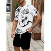 Urlaubsstil 2-teiliges Set für Jungen Lässig Sportlich Strandmusterdruck Bequem und vielseitig Kurzarm-T-Shirt Shorts Outfit