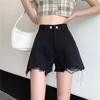 Dünne Denim Rostfarbene A-Linien-Hose Sommer Neu Hohe Taille Zerrissen Schlichte Weitbein-Shorts für Damen