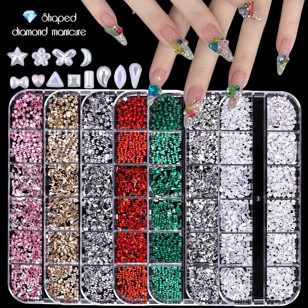 Nail Art Schmuck 12 Gitter Silber Mini Speziell geformter Diamant Acryl Stern Liebe Wassertropfen Schleife Gemischt Flachboden Diamant
