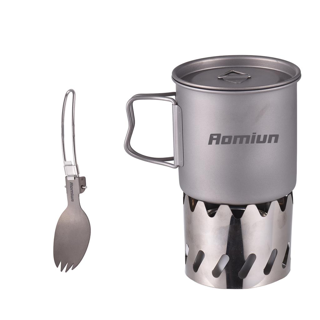 Camping Kochset Ti 500ml Tasse Gabel Löffel Spirituskocher Windschutz Tragbare Camping Kochsets für