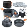 Outdoor Camping Kochgeschirrset Tragbares Picknick-Geschirr Bratpfanne Suppentopf Kessel Teller Messer