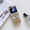 Silk Thread Texture PU Leather Cover with Gold Bowknot Pendants Charm For Samsung Galaxy Z Flip 6 5 4 3 Flip6 Flip5 Flip4 Flip3 5G Hard Plastic Shockproof Hinge Protective Phone Case