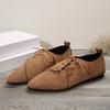 2025 Große Größe Flachmund Einzelne Schuhe Frühling und Sommer Neu Spitzschuh Schnürung Flacher Boden Lässige Einzelne Schuhe