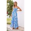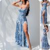 Damen Sommer Träger Sexy Schlitzkleid mit Bedruckter Mode Freizeitkleidung