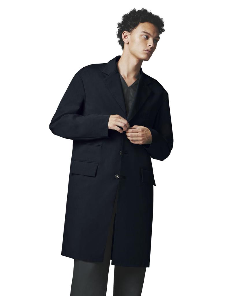 DIVISION Arztkittel DOM0030 Dunkelmarine [UNITE ME] (Lange Ärmel) [Herren] [Blickdicht/Antistatisch/Stretch/Antimikrobiell/UV-Schutz/Pflegeleicht]