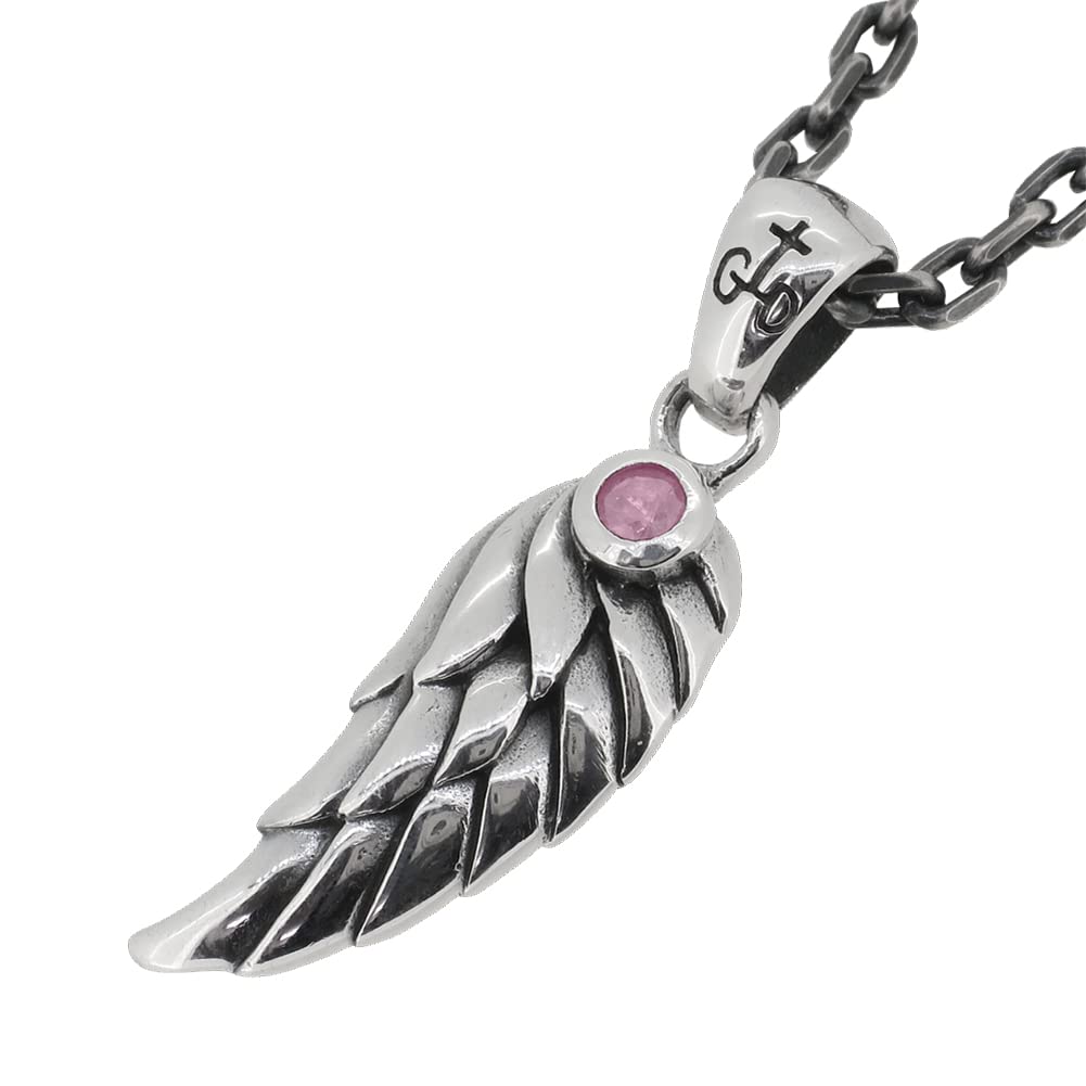 Pink Sapphire Wing Small Silver 925 Necklace Natural Stone [Grandeur] (with Chain) Men's