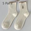 5 Paar Damen Herbst und Winter Neue Baumwolle Lieblich Einfarbig Dünne Streifen Stickerei Hase In Der Röhre Frotteesocken
