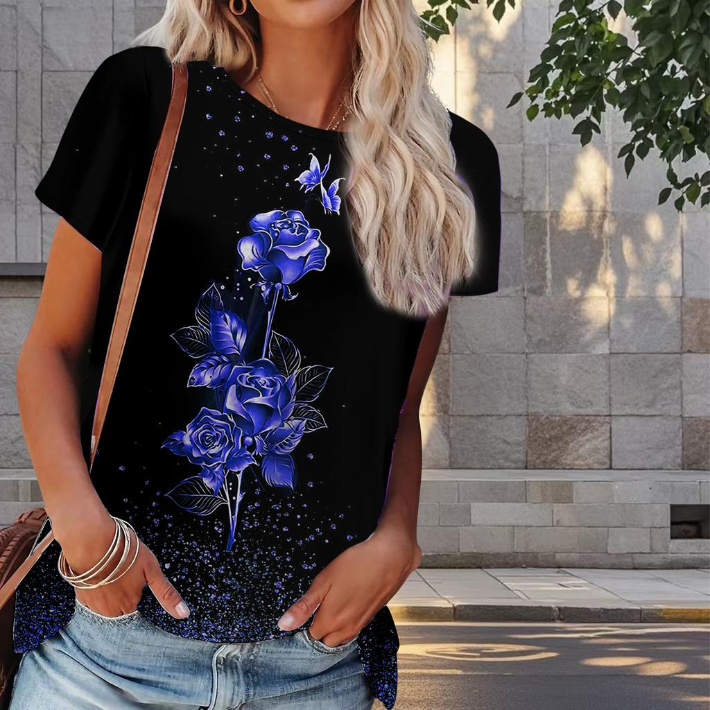 Damen Sommer T-Shirt Blumendruck Retro Mode Kurzarm T-Shirts Casual Printed Tops