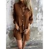 Damen Freizeit Einfarbig Shorts Langarm Gerüschtes Gewebe Hemd Zweiteiliges Set