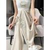 Neue chinesische Stickerei-Hose mit weitem Bein für Damen im Sommer, dünn, hohe Taille, schmale Version, gerades Bein, Freizeithose für Damen