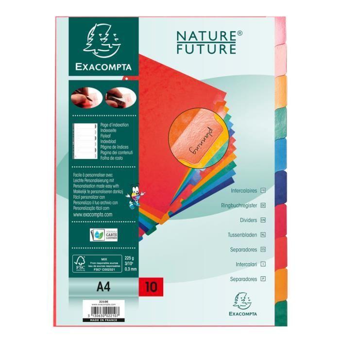 Intercalaires - exacompta - a4 - carte lustrée 225g - onglets renforcés - 10 positions