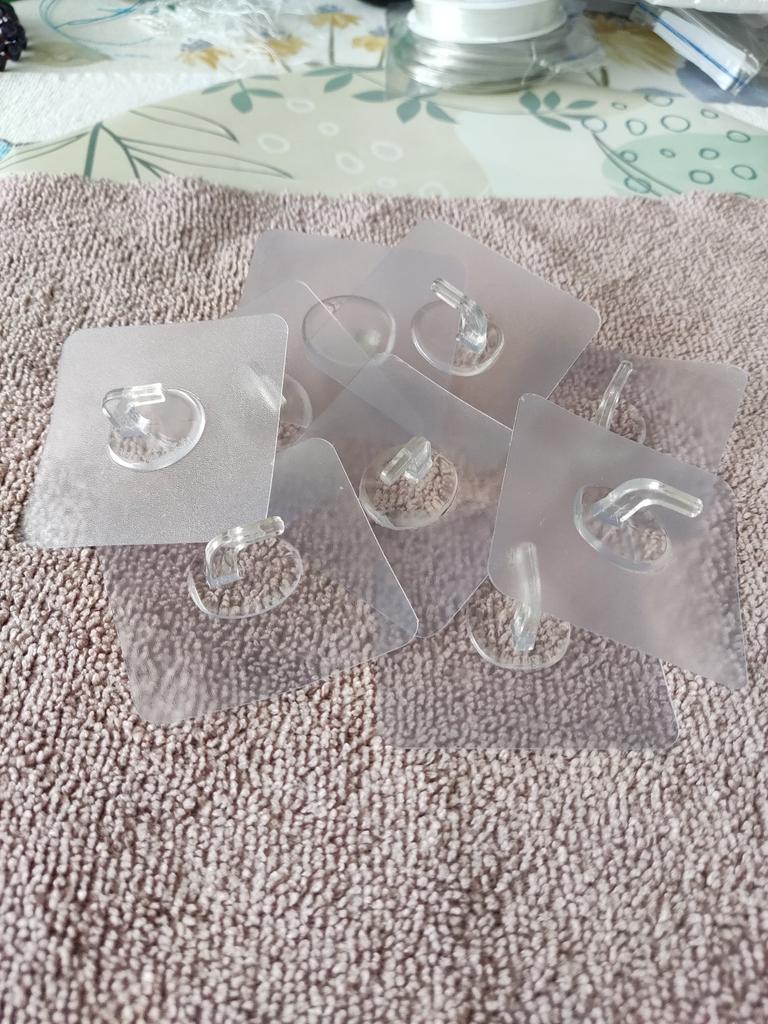 Die Haken kleben gut. Sehr praktisch zum Aufkleben in der Küche, im Badezimmer usw. Empfehlenswert.
