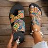 Damen Lässige Stilvolle Bedruckte Stoff Große Größe Flache Sandalen, Neue Damen Modische Lässige Flache Hausschuhe