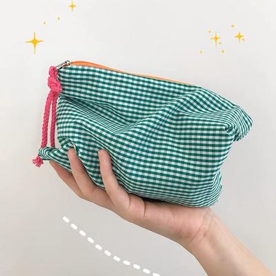Reise tragbar Karomuster Reißverschluss Mini Aufbewahrungstasche Geldbörse Kosmetiktasche Make-up Tasche Organizer Kontrastfarbe Damen Kapazität Beutel