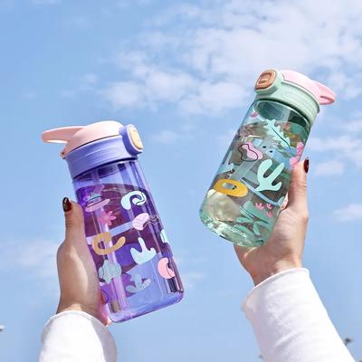 600ML Kinderwasserflasche mit Strohhalm Niedliche Kinder Trinklernbecher Outdoor Tragbar Cartoon Wasserflasche für Kinder Schule Boba