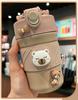 450 ml süßer Bär, Doppel-Trink-Thermoskanne, Kaffeebecher mit Strohhalm, tragbarer Edelstahlbecher, isolierte Becherflasche für Kinder und Mädchen