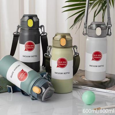 800 ml Doppel-Edelstahl 304 Sport-Isolierflasche mit Strohhalm Tragbarer Thermosbecher mit Riemen Thermowasserflasche Becher