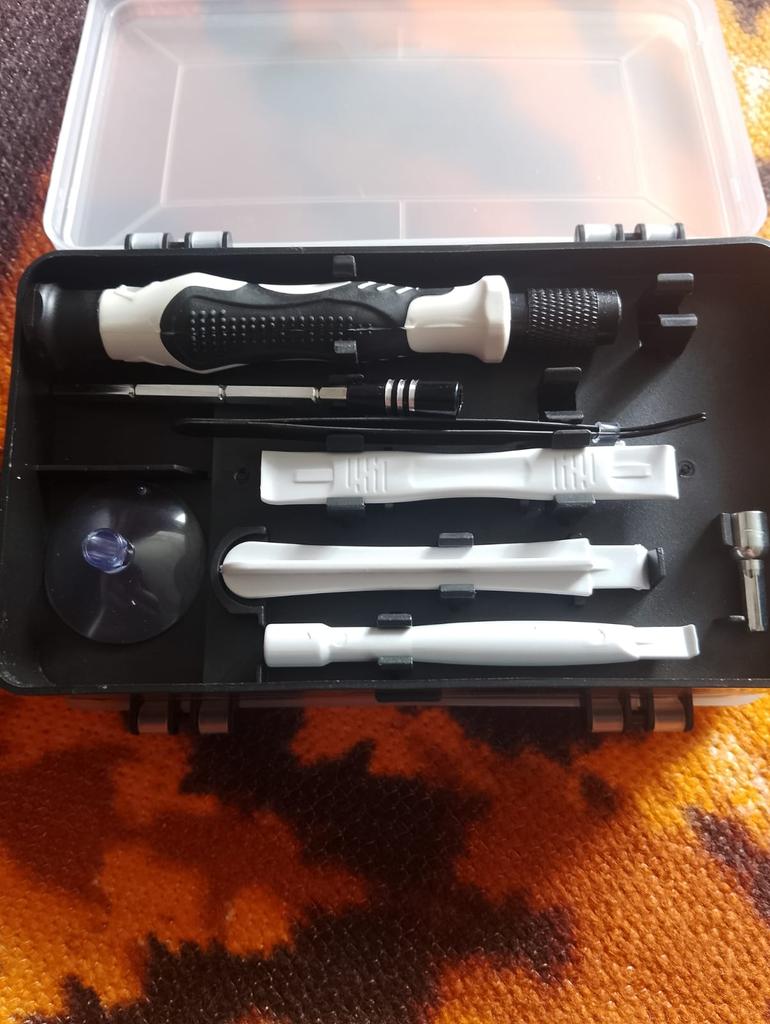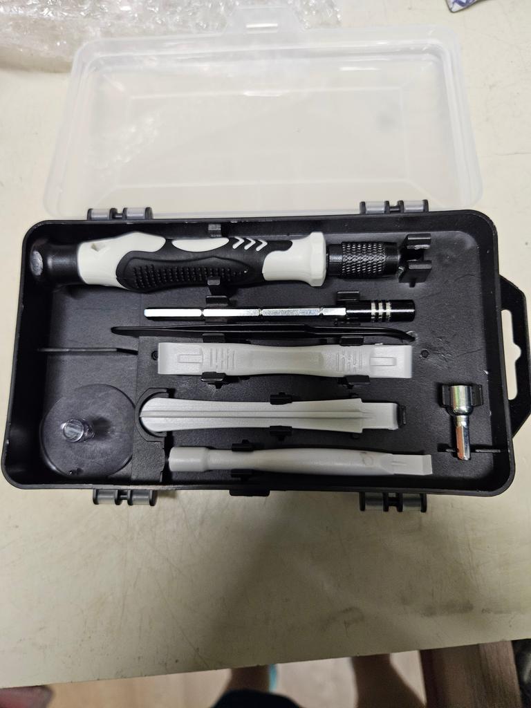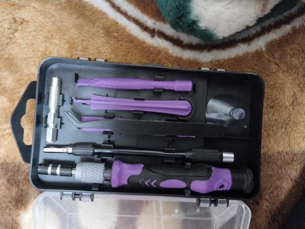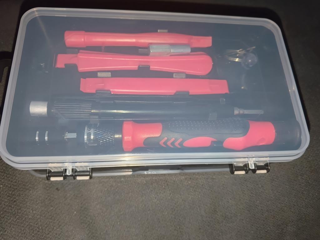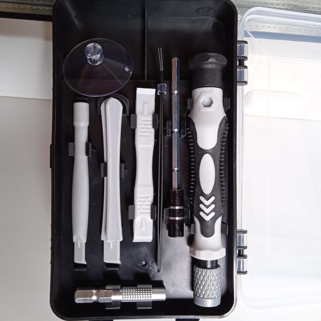 Ein sehr gutes Werkzeugset. Besonders die verschiedenen Schraubendreher. Es gibt Schraubendreher für sehr kleine Schraubengrößen. Öffnungswerkzeuge für Kunststoffgehäuse und andere Werkzeuge, die bei der Reparatur elektronischer Geräte nützlich sind. Mit einem Wort, ein gutes Werkzeugset für Reparaturen.