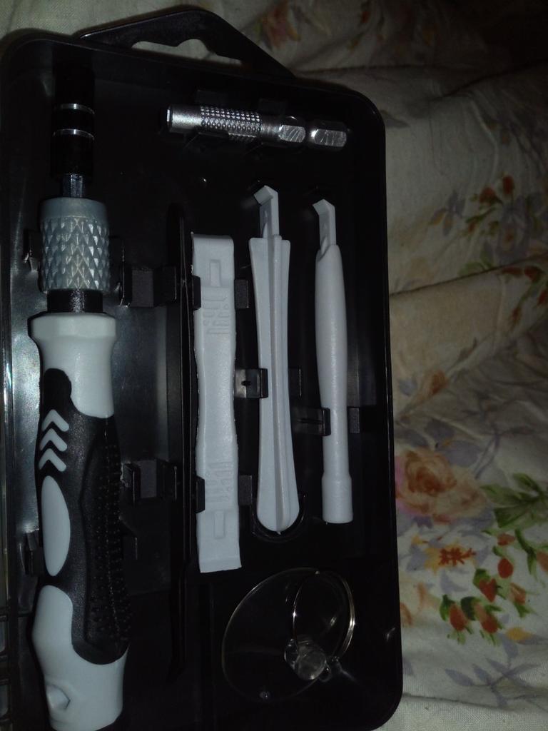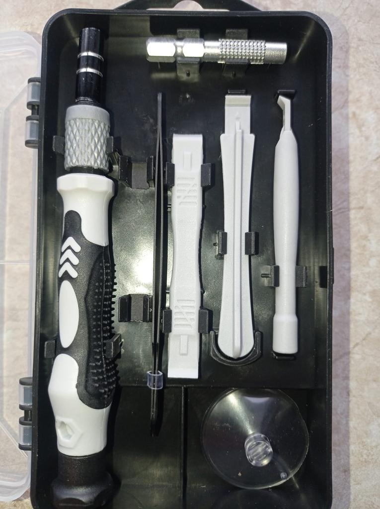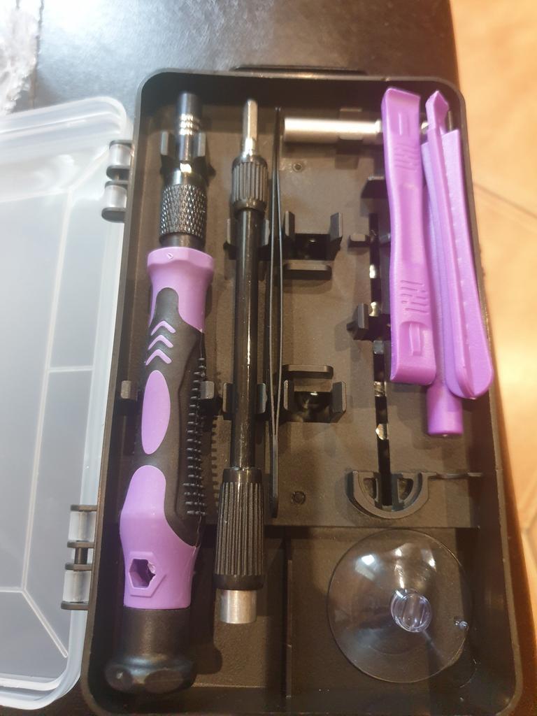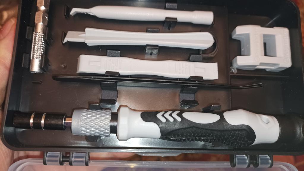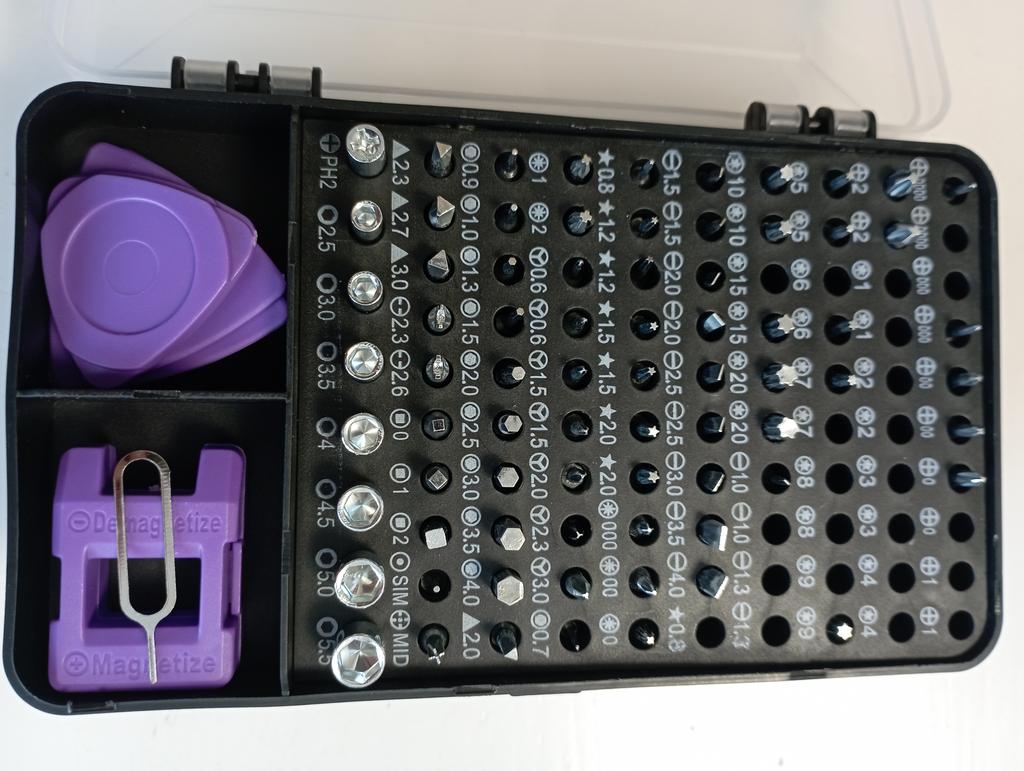 Ein sehr gutes Werkzeugset. Besonders die verschiedenen Schraubendreher. Es gibt Schraubendreher für sehr kleine Schraubengrößen. Öffnungswerkzeuge für Kunststoffgehäuse und andere Werkzeuge, die bei der Reparatur elektronischer Geräte nützlich sind. Mit einem Wort, ein gutes Werkzeugset für Reparaturen.