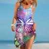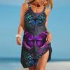 Sommer Neues 3D Schmetterling Gedrucktes Damenkleid Sexy Ärmellos Sommer Damenkleid Retro Locker Lässig Mädchenkleid