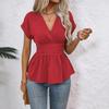 V-Ausschnitt Figurbetont Unifarben Schulterärmel Faltenrock mit Raffung am Saum und Kurzen Ärmeln für Damen