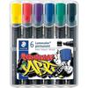 Staedtler lumocolor Box mit 6 Universal-Permanent-Filzstiften, sortierte Farben, Spitze 0,4 mm