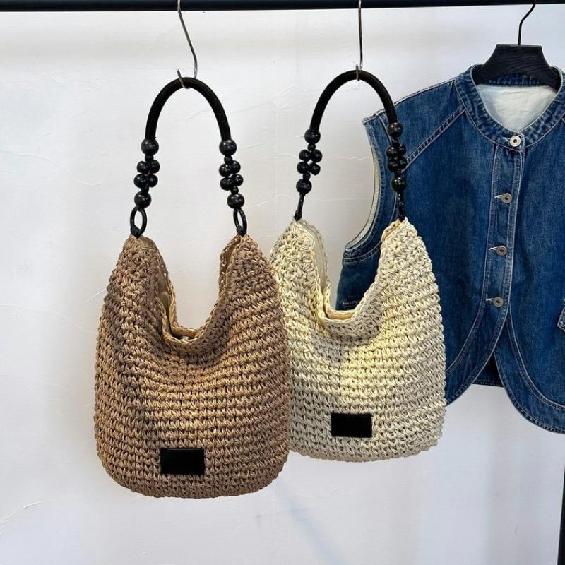 Taschen Damen Retro geflochtene Taschen Fauler Stil große Kapazität ausgehöhlte Strandtaschen Kontrastfarbe Unterarm-Beuteltaschen