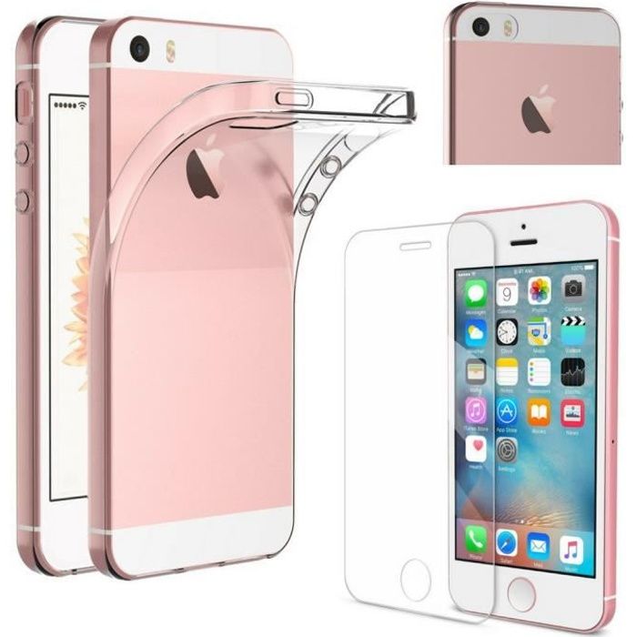 Hülle und Displayschutz - Phonillico® - iPhone SE (2016) - Silikon Transparent - Ultra Slim - Gehärtetes Glas
