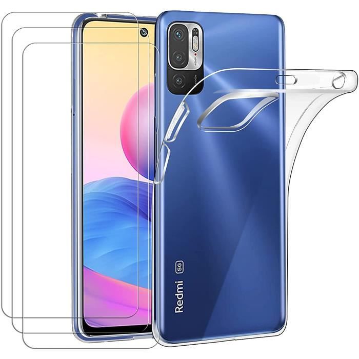 Hülle für Xiaomi Poco M3 Pro 5G/Redmi Note 10 5G 6,5" + 3er-Pack Panzerglas, Weiche TPU Silikon Hülle Etui Handyhülle Cover