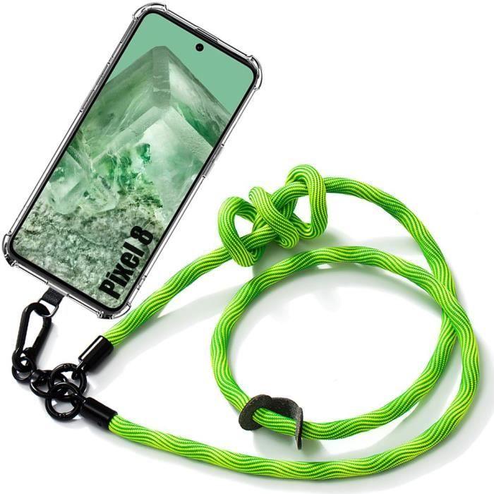 Hülle mit Kordel - E.F.CONNECTION - für Google Pixel 8 - Transparenter Schutz - Stoßfest - Abnehmbare grüne Kordel