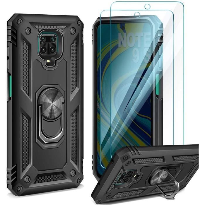 Coque de protection - Redmi - Note 9S - Verre trempé - Anneau support métal - Noir