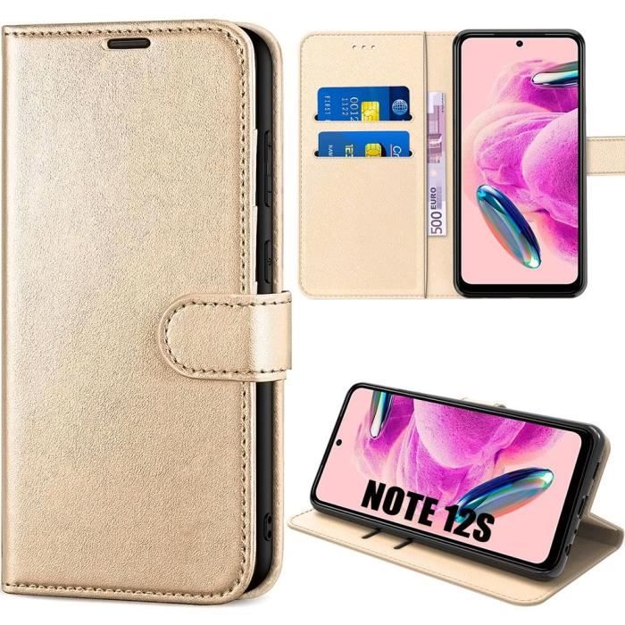 Hülle für Xiaomi Redmi Note 12S, Stoßfestes Etui in Lederoptik mit Kartenfach und Standfunktion Gold (nicht für Redmi Note 12)