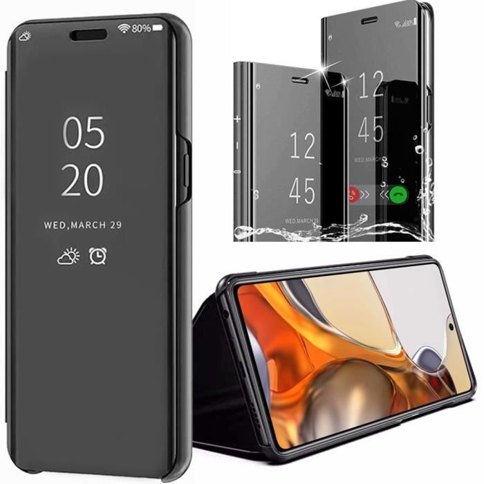 Hülle für Xiaomi 11T - E.F.CONNECTION - Spiegeleffekt Durchscheinendes Fenster - Verstärkter Schutz Schwarz