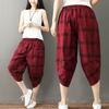 Sommer Baumwolle Leinen Mittellange Hose Damen Karomuster Locker Übergröße Harem Weites Bein Radieschen Leinen Freizeit Cropped Hose
