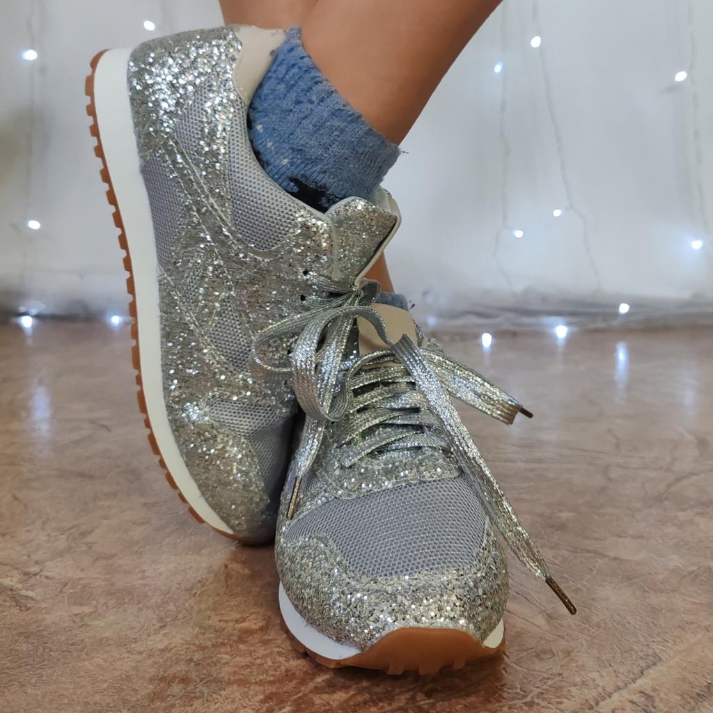 Glitzer-Sneakers. Märchenhaftes Design, gute Verarbeitung und Material - das ist es, was Sie gesucht haben. Hervorragend geeignet für Abendgarderobe oder einfach, um Ihren Alltag aufzupeppen.Große Auswahl an verschiedenen Farben. Größenbereich: von 35 bis 43. Ich habe Größe 40 gewählt. Ideal für einen Fuß von 25 cm. Definitiv empfehlenswert.👍👍👍