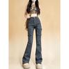 Micro-Flare Arbeitshose für Damen Neu Frühling und Sommer Hochtailliert Schlankmachend Retro Schwarz Hufeisenhose