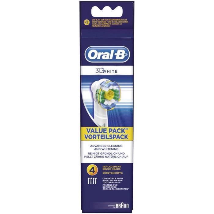 Embouts de brosse à dents - oral b - 3d-white eb18-4 - lot de 4 - partie centrale polissante - pour adultes