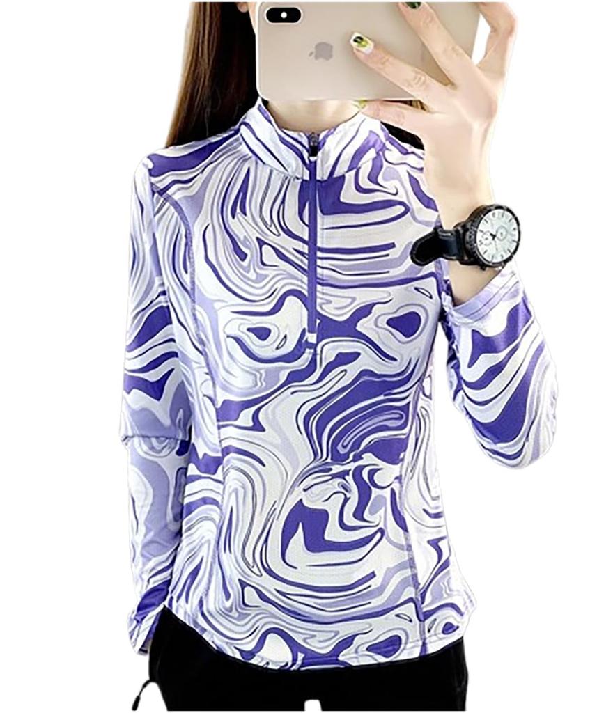 Sportswear Half Mountain Sweat Quick Running Yoga Easy to Mix and Easy to Allover Pattern Purple [M-THING] Tops, All-over Pattern, Zip, Golf,