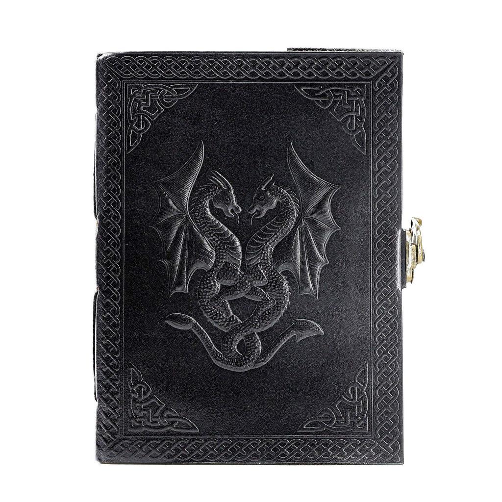 Passion Leather Handgefertigtes Notizbuch mit doppeltem Drachenmotiv, Unisex, unliniertes Papier, mittelgroßer Schreibblock, Künstlergeschenk, Komal's