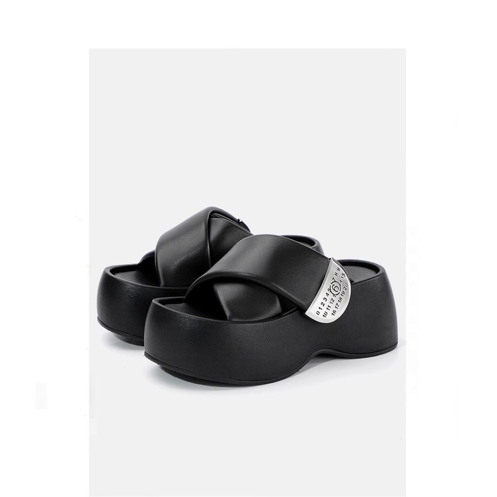Klettverschluss Metall Kreuz Hausschuhe Damen 2025 neu klein dick Sohle Höhenerhöhung Freizeit Urlaub Strand Sandalen