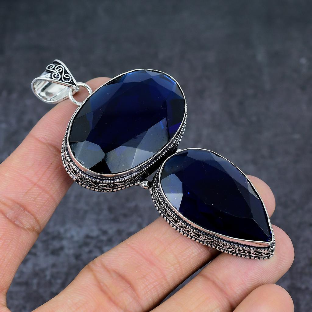 London Blue Topaz Handmade 925 Sterling Silver Jewelry Pendant 3.35" C5Q85
