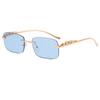 Randlose Leopard Transparente Sonnenbrille Damen Trend Quadratische Sonnenbrille Verziert Street Brille